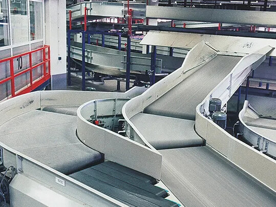 A conveyor belt is the carrying medium of a belt conveyor system A belt conveyor system is one of many types of conveyor systems A belt conveyor system consists of two or more pulleys, with a closed loop of carrying medium—the conveyor belt—that rotates about them One or both of the pulleys are powered, moving the belt and the material on the belt forward The powered pulley is called the drive pulley while the unpowered pulley is called the idler pulley There are two main industrial. Processes to merge baggage in and discharge it often take place at a 30° or 45° angle to the sorter’s conveying direction The conveyors either have one single wide conveyor belt (full belt conveyors) or several narrow belts that run in parallel in a set (strip merges) Technical Requirements of the belts. There are two main types of conveyor systems found in airports, one of which is used to move people and the other to transport luggage An airport conveyor that is used to move people is similar to a horizontal escalator, though they can operate on slight inclines These conveyors are typically installed in large airports to make it easier for people to move between connecting flights or to and from the terminals.