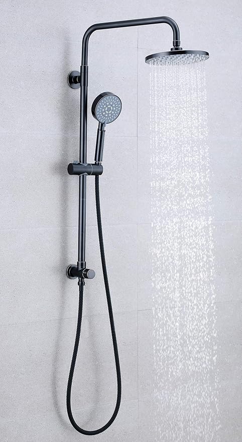 Phasat Retrofit Rain Shower System 8 Rain Showerhead With Handheld Shower Head Adjustable Slide Bar Soap Dish Matte Black Ptsb01ux Amazon Com