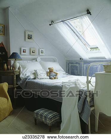Velux Fenetre Au Dessus Lit Dans Grenier Chambre A Coucher Banque De Photo U Fotosearch