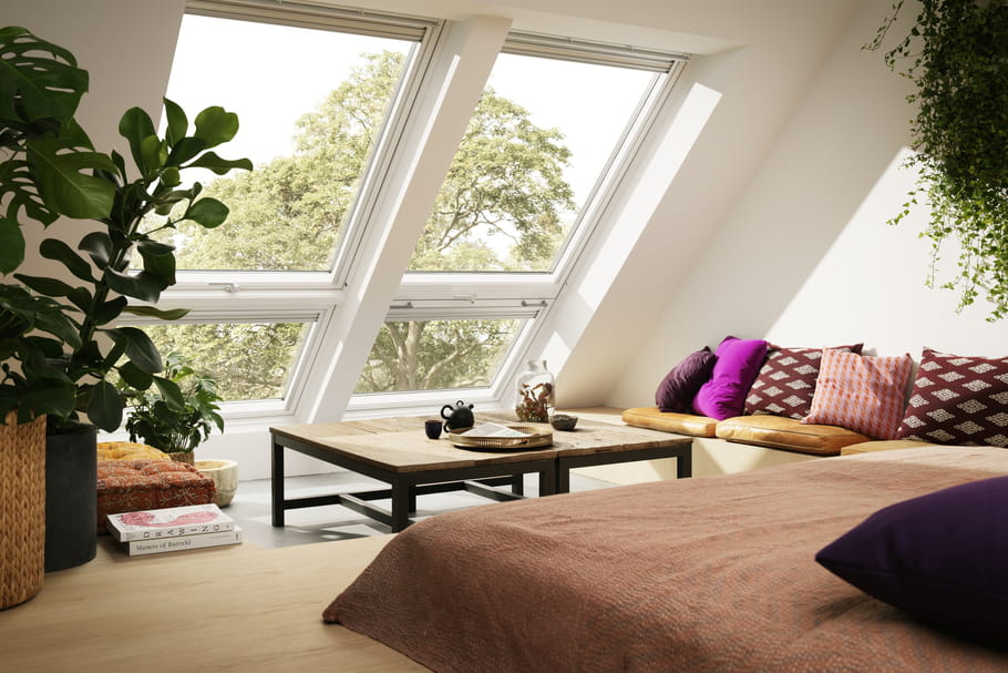 Un velux ajoute plus de lumière naturelle à l'espace A skylight adds more natural light to the space Une chambre avec velux et salle de douches attenante Bedroom with velux and shower room. Comment créer une salle de bains de 7,5 m² dans des combles ?La rédaction de Rêve de Combles vous apporte conseils, astuces et idées en vidéo !. Profitez de températures agréables dans votre chambre à coucher, de jour comme de nuit Les fenêtres VELUX avec stores et volets offrent une isolation et une protection thermique supplémentaires, réduisant ainsi la déperdition de chaleur en hiver et les hausses de température par temps chaud et ensoleillé.