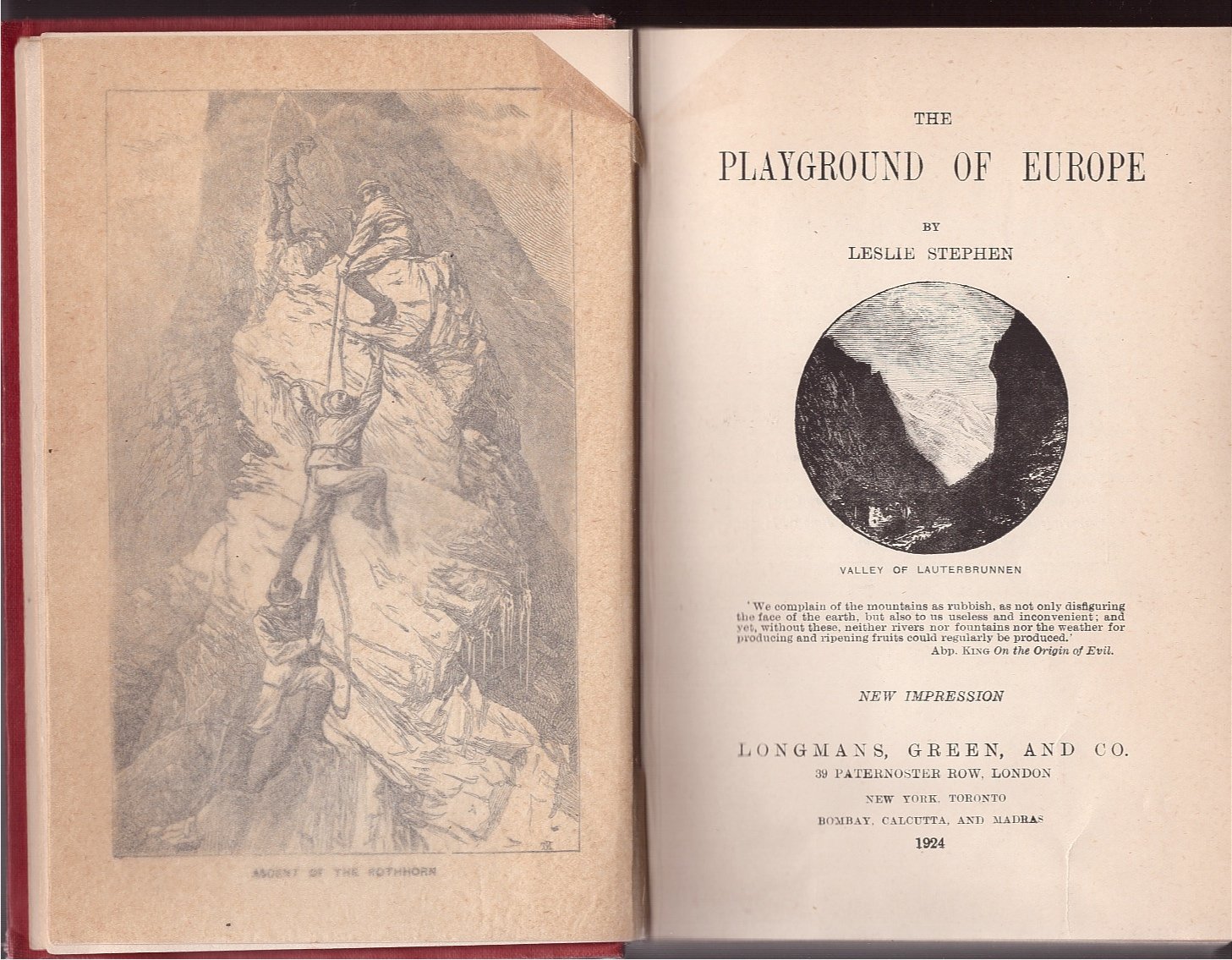 Leslie Stephen The Playground Of Europe 14 New Edition Title Page Frontispiece Foxed