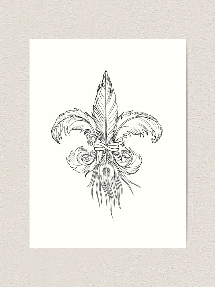 Fleur De Lis Feathers Line Art Print By Galbrin Redbubble