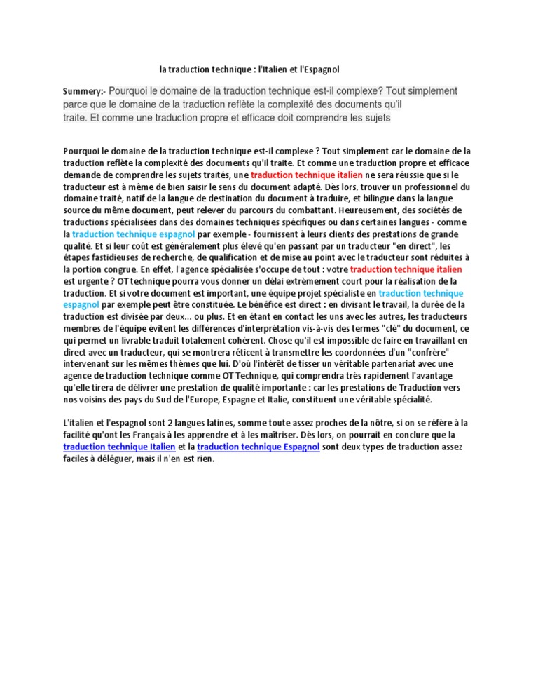 La Traduction Technique L Italien Et L Espagnol Traductions Science