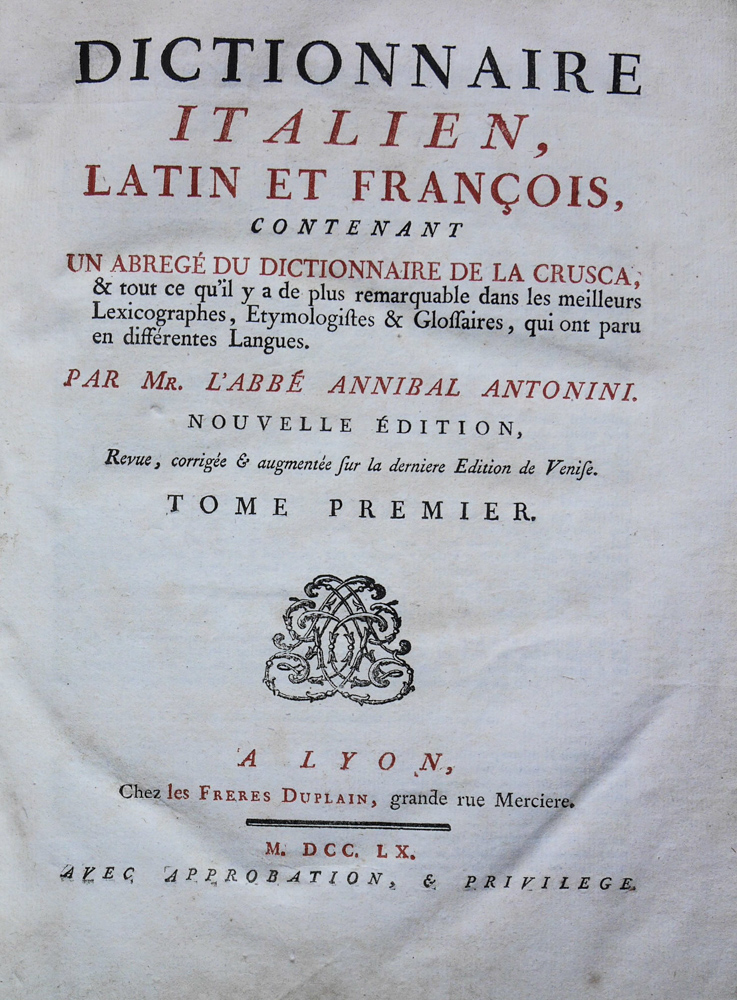 Dictionnaire Italien Latin Et Francois Dictionnaire Francois Latin Et Italien Le Dicopathe