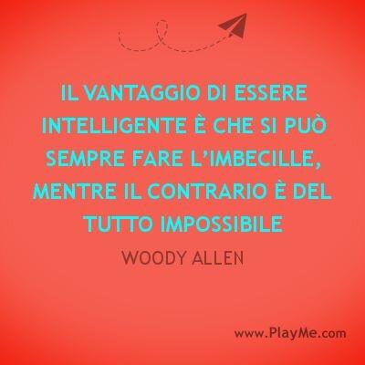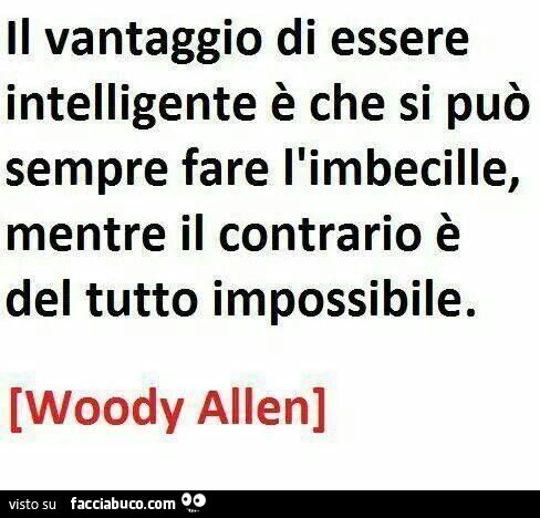 Il Vantaggio Di Essere Intelligente E Che Si Puo Sempre Fare L Imbecille Mentre Il Contrario E Del Tutto Impossibile Woody A Parole Parole Sagge Woody Allen