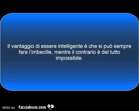 Il Vantaggio Di Essere Intelligente E Che Si Puo Sempre Fare L Imbecille Mentre Facciabuco Com