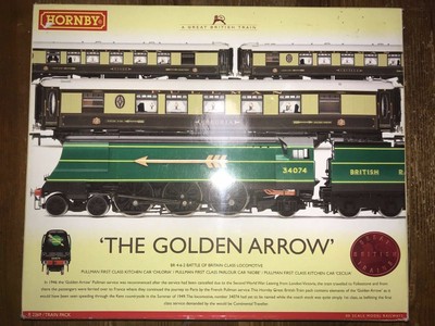 Www Hattons Co Uk Hornby R2369 Po04 The Golden Arrow Train Pack Pre Owned Imperfect Box