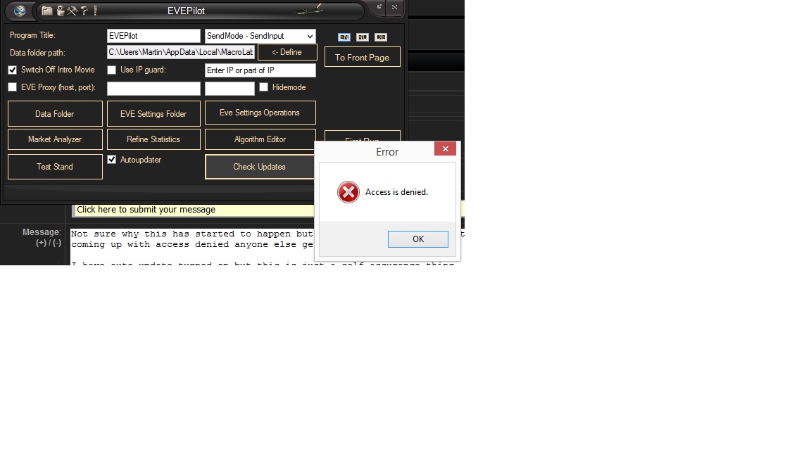 Macro Laboratory Access Denied When I Try To Check Updates Macrolab Forums Eve Pilot Mining Hunting Trade Bot For Eve