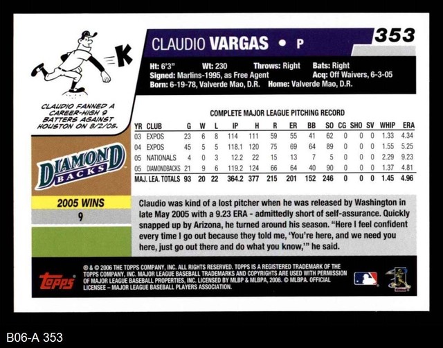 Baseball 06 Topps Autographs Green Ta Cv Claudio Vargas Arizona Diamondbacks Auto Card Emojiplay Vn