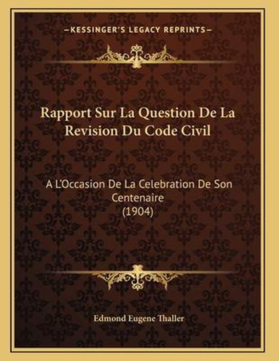 Bol Com Rapport Sur La Question De La Revision Du Code Civil Edmond Eugene Thaller