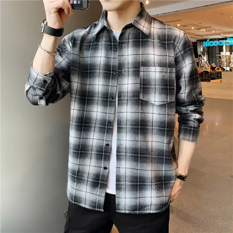 Plaid Red New Casual Shirt Men Military Style Fashion Autumn Long Sleeve Blouse Male Streetwear Korean Japanese Shirts Casual Shirts Aliexpress