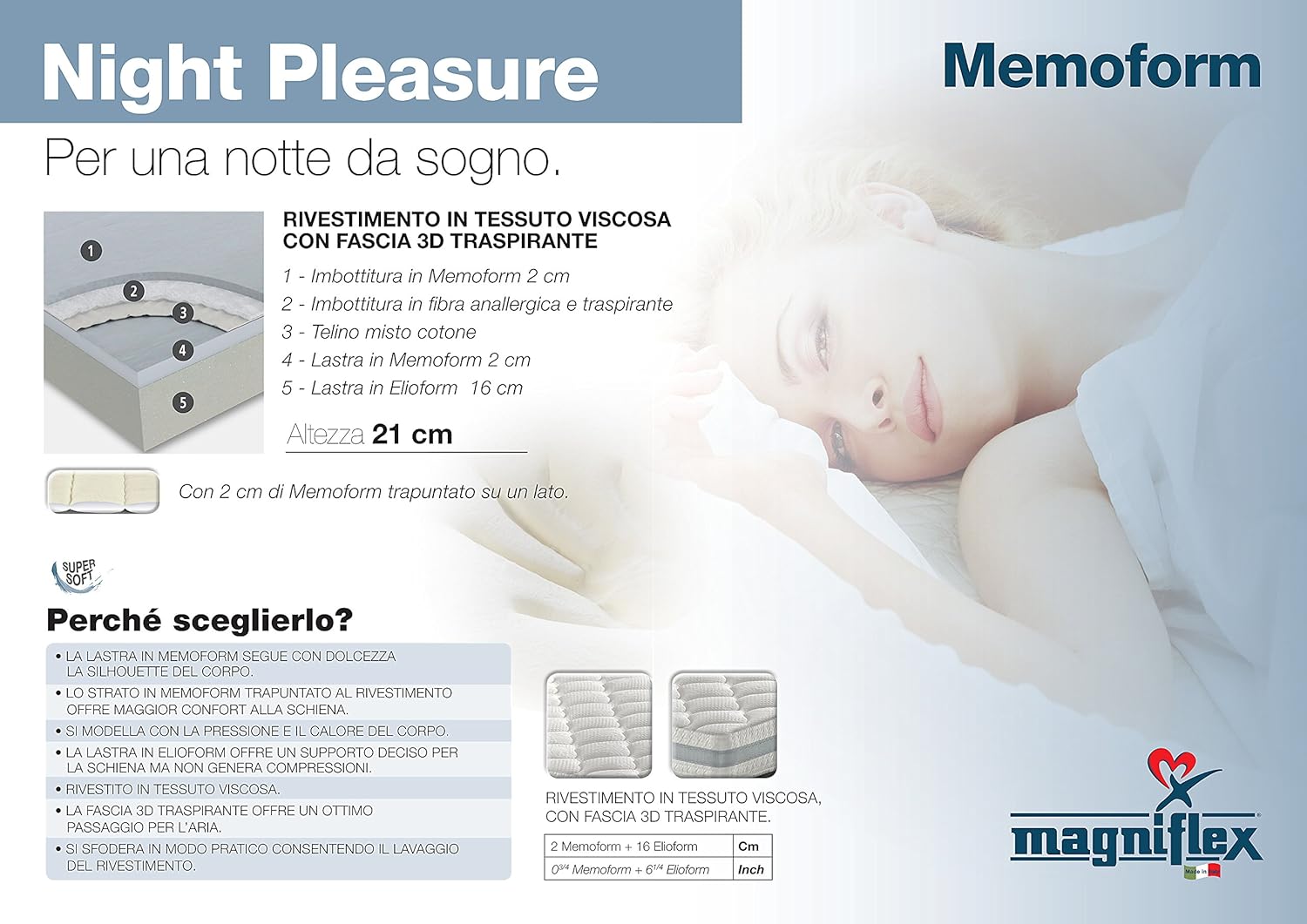 Magniflex Night Pleasure Matelas Orthopedique A Memoire De Forme Pour Lit Deux Places S Adapte A La Forme Du Corps Pour Un Soutien Du Dos Optimal 190 X 160 X 21 Cm Dehoussable