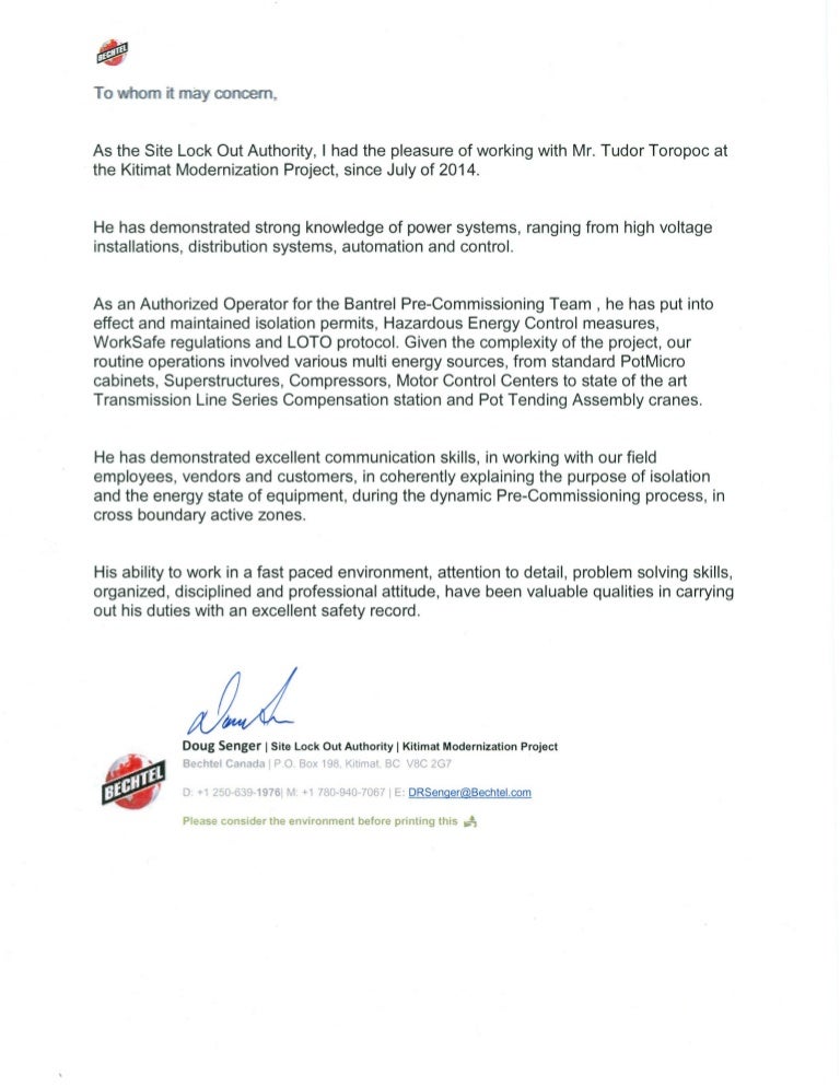 Tudor Toropoc Reference Letter Bechtel