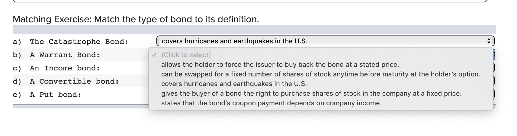 Solved Matching Exercise Match The Type Of Bond To Its D Chegg Com