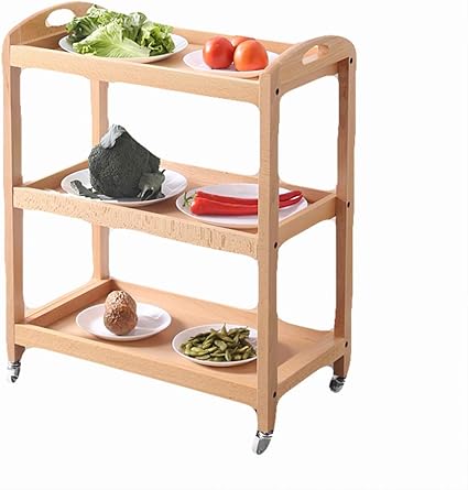 Hyn En Bois Massif Mobile Dining Car Epaissie Oaken Surface Est Lisse Et La Peau Protege Contre Les Rayures 360 Universelle Roue 3 Etageres Bardeau Pour La Cuisine Rack Amazon Fr Cuisine
