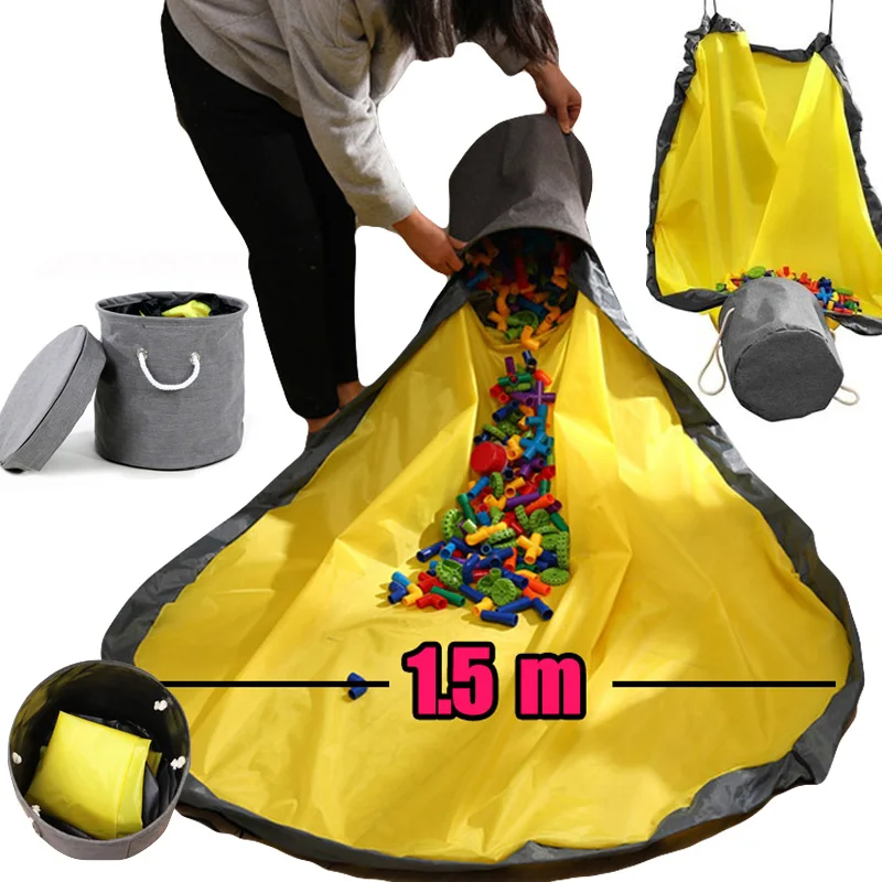 Hxzb Jouet Rapide Sac De Rangement Integre Tapis De Jeu Multifonctionnel Enfants Jouet De Nettoyage Conteneur De Stockage De Grande Capacite Etanche Toy Bucket Poche 1piece Coffres A Jouets Bebe Puericulture