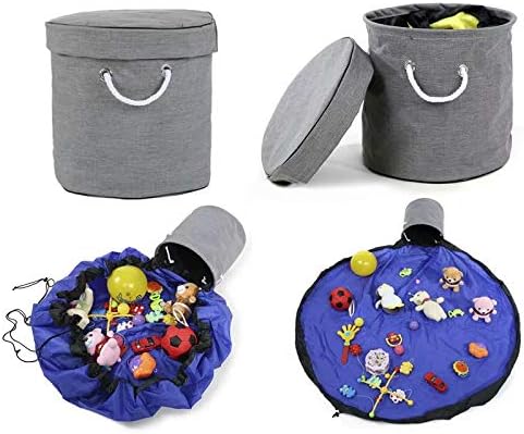 Fuqun Panier De Rangement Pour Jouets Et Tapis De Jeu Organisateur De Cadeaux De Conteneur De Nettoyage Gris Solide Avec Sac Jouets Pour Enfants Boite De Tapis Rapide Portable Exterieure Pratique