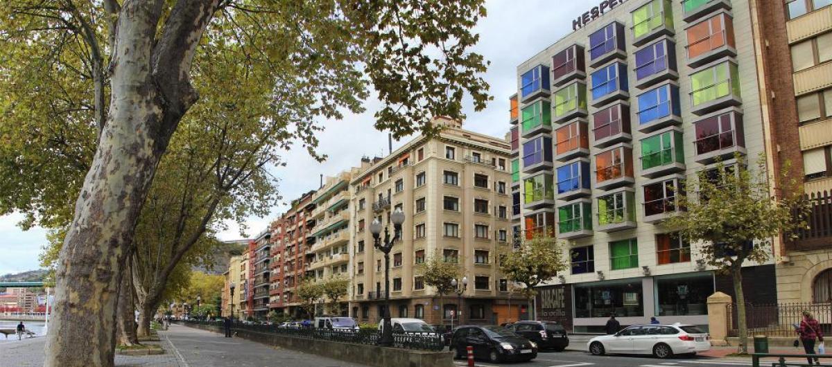 Travellers' Choice Combining avantgarde design with a superb location across from the Guggenheim, the newlybuilt Hesperia Bilbao is a luxury hotel just 0 meters from the main shopping area. View deals for Hesperia Bilbao, including fully refundable rates with free cancellation Guests praise the comfy beds Guggenheim Museum Bilbao is minutes away WiFi is free, and this hotel also features a restaurant and a bar. The Hesperia Bilbao Hotel is located right in front of the Guggenheim Museum and on the banks of the Bilbao Estuary, and just like Frank Gehry's iconic work, the building is a real eyecatcher thanks to its picturesque coloured windows, making it a prominent feature of the city's skyline.