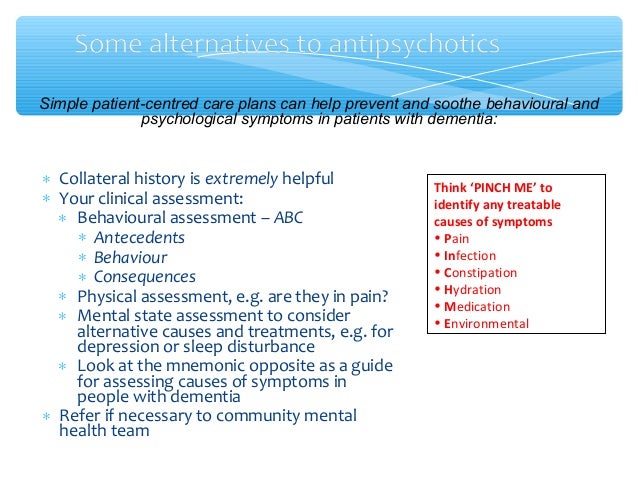 A helpful mnemonic which I came across whilst at Medical School, and that I found to be a useful mental checklist when assessing patients with delirium, was “PINCH ME” It is a helpful tool to help guide your history, examination and investigations Remember – delirium is not a diagnosis It is an essential first step to identify the presence of delirium, but it is much more important to attempt to get to the underlying reversible cause and address and treat this. A simple mnemonic called PINCH ME (Pain, INfection, Constipation, deHydration, Medication, Environment) can help identify potential underlying causes of DSD and considerations for care planning The mnemonic can easily be adapted to different clinical settings and a fictitious scenario is presented to show its application in practice. The PINCHME algorithm (see figure 1) is frequently used to guide etiological assessment and is applicable to patients with Covid19 Management of agitated and distressed patients with delirium In addition, the delirious state can be highly problematic in terms of patient distress and behavioural disturbance.