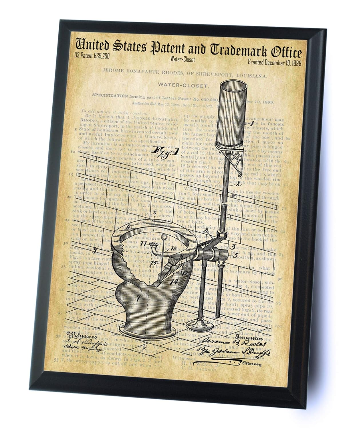 Amazon Com Toilet Water Closet Fixture Patent And Trademark Drawing 9 X 12 Inch Wooden Plaque Handmade