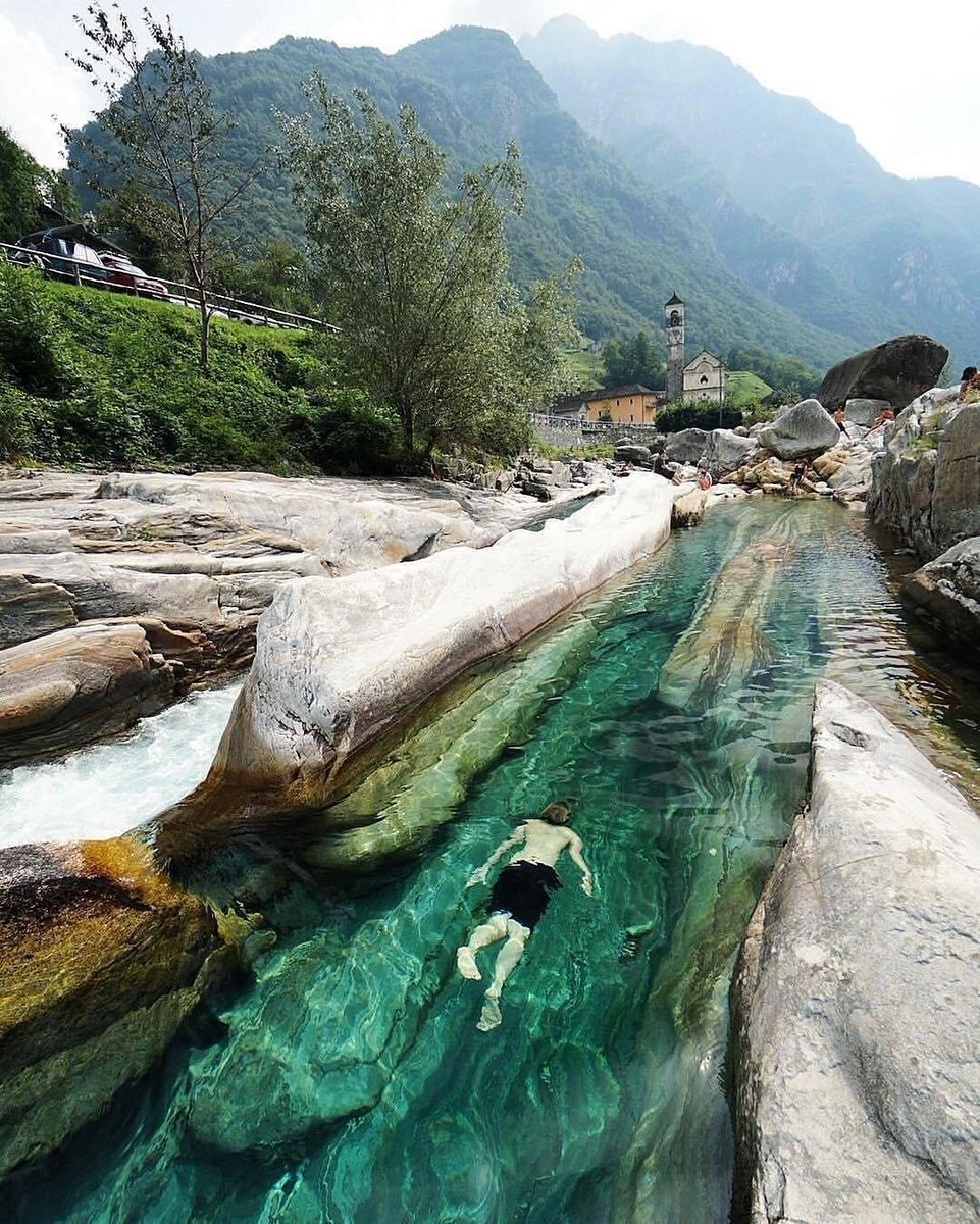 Le acque del Verzasca, in prossimità del ponte, sono di una limpidezza (e di un freddo!) incredibile anche le rocce , scavate dalla forte corrente, presentano venature multicolori di rara bellezza. Valle Verzasca Attività Canyoning sizzling, sparkling adventure in the spectacular mountain rivers and waterfalls of Switzerland. VALLE VERZASCA is a long, narrow valley in Ticino—the Italian speaking region of Switzerland Cut by the Verzasca River, the valley is remote and touched little by time The river is rich with swimming spots and rocks to laze about on, but the most famous and popular swimming area is at Lavertezzo—a tiny valley village.