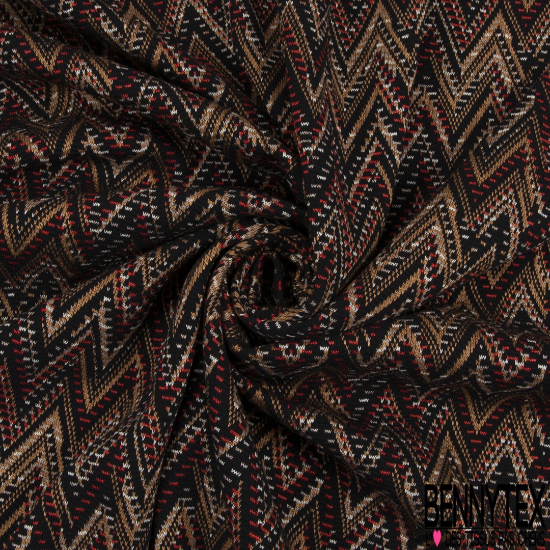 Coupon 3m Maille Jacquard Motif Amerindien Ton Chaud Fond Noir Bennytex Vente De Tissus Pas Cher Au Metre