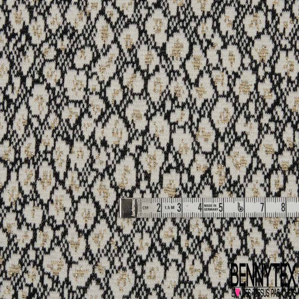 Coupon 3m Maille Jacquard Motif Leopard Noir Lurex Or Fond Ecru Bennytex Vente De Tissus Pas Cher Au Metre