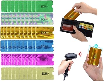 Amazon Com Rarityus 60pcs Rfid Holographic Blocking Sleeves Card Holder Blocking Bank Anti Thief Wallet Protect Case Credit Cards Safety Identity Theft Prevention Office Products
