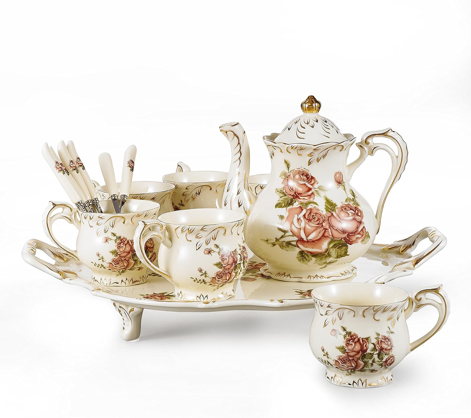 Panbado Service A Cafe The Porcelaine Ivoire Anglais Vintage Set 14 Pcs 1 Theiere 6 Tasse 6 Cuillere 1 Plateau Style Fleuri Royal Cadeau Fete Mariage Pour 6 Personnes 02 Amazon Fr Cuisine Maison