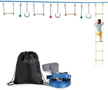 Slackline Obstacle Kit Line Backyard Obstacle Training Course For Kids Hanging Monkey Bars Kit For Kids With Ladder Portable Training Equipment Gift Set Amazon Nl