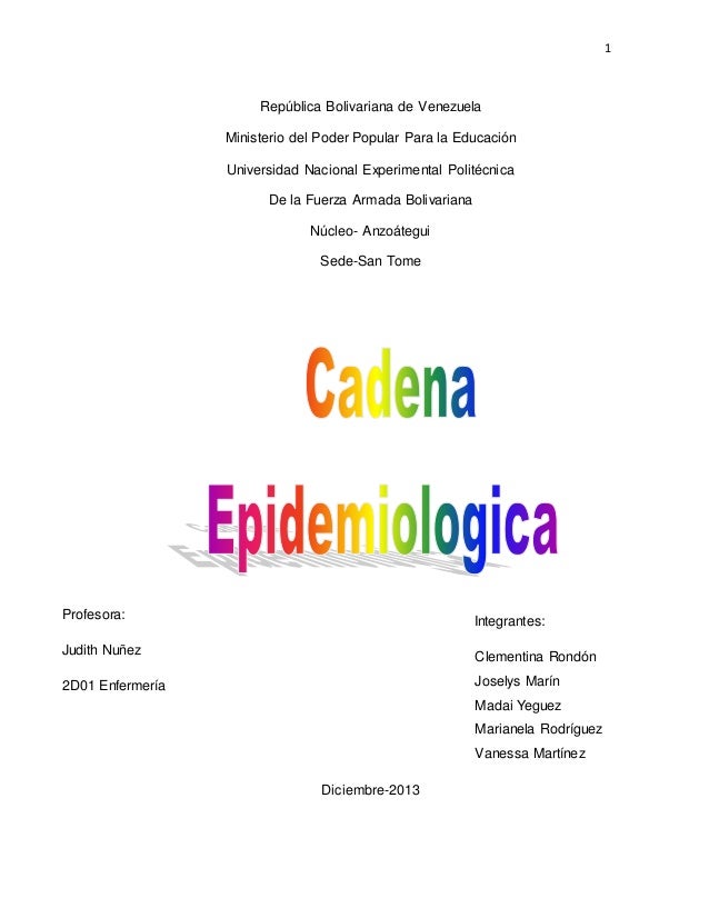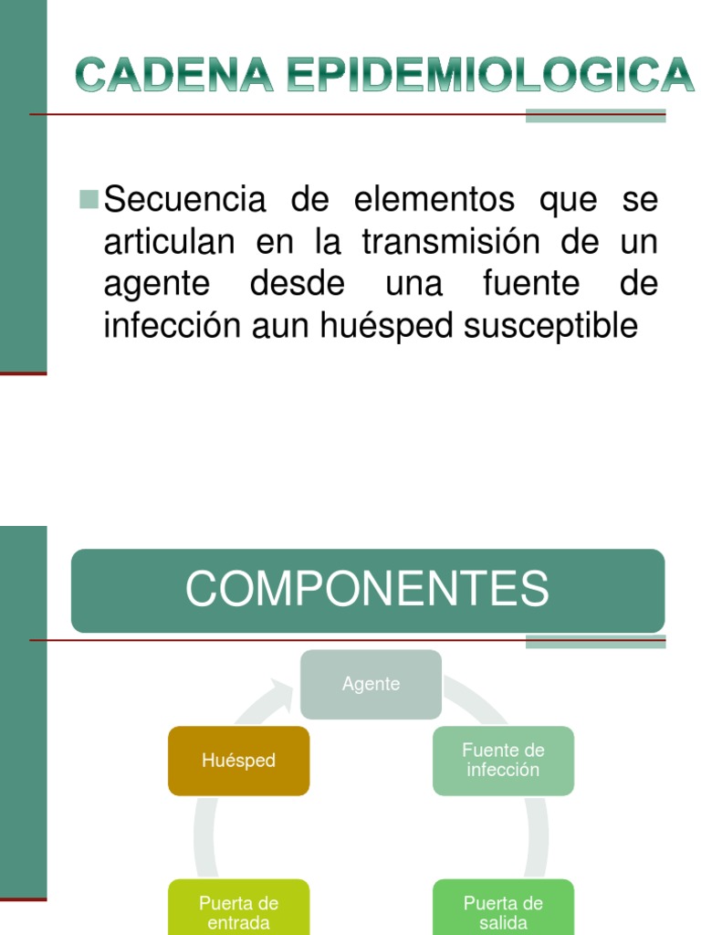 Created using Powtoon Free sign up at http//wwwpowtooncom/youtube/ Create animated videos and animated presentations for free PowToon is a free. La cadena epidemiológica cuenta con una serie de eslabones más que constituyen el camino que sigue el agente causal de una determinada enfermedad hasta llegar al huésped susceptible Agente Es aquel elemento que debe estar presente en una enfermedad para que ésta se desarrolle Puede ser biológico, físico o químico. 03 Cadena Epidemiológica Listado de subpáginas La transmisión de agentes infecciosos en un centro sanitario requiere 3 elementos 1 Fuente o reservorio;.