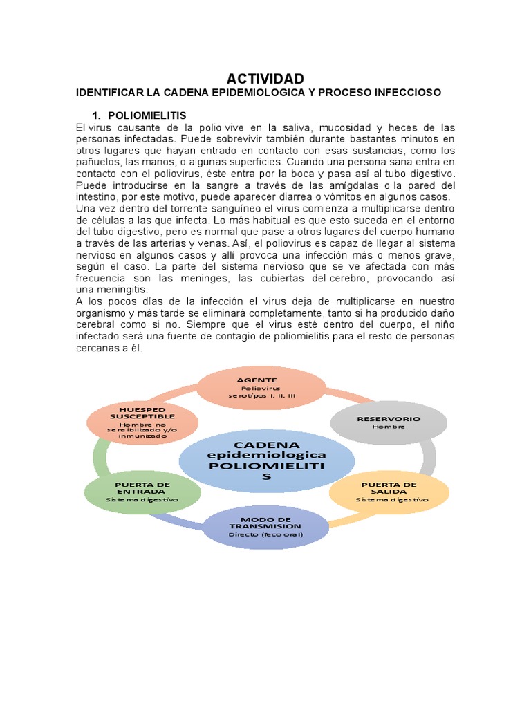 Actividad Identificar La Cadena Epidemiologica Y Proceso Infeccioso 1 Poliomielitis Poliomielitis Medicina