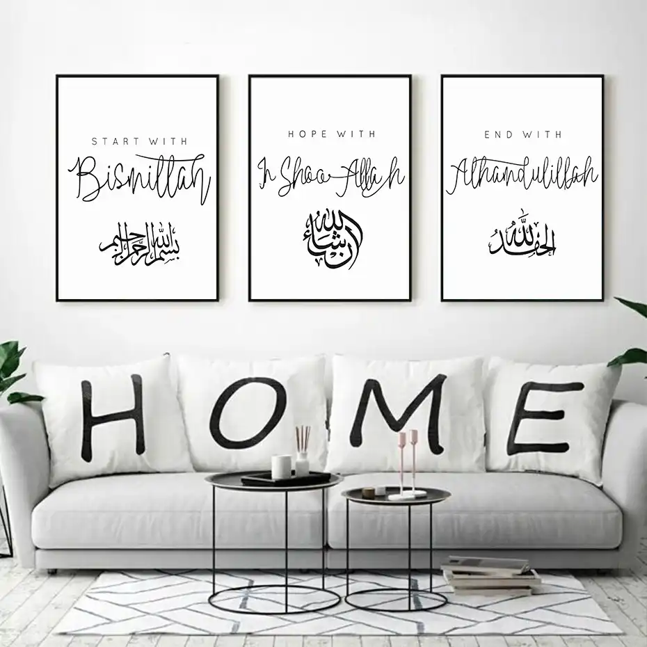 Toile D Art Mural Islamique Noir Et Blanc Peinture Arabe D Alhamdulillah Decoration De Maison Aliexpress