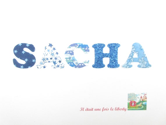 Appliques Thermocollants Prenom Personnalisable Sacha Exemple Propose De 5 Lettres En Differents Tissus Liberty Bleus Et Gris Un Grand Marche