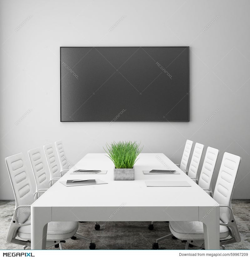 Mock Up Tv Screen In Meeting Room With Conference Table Interior Background Stock Photo Megapixl