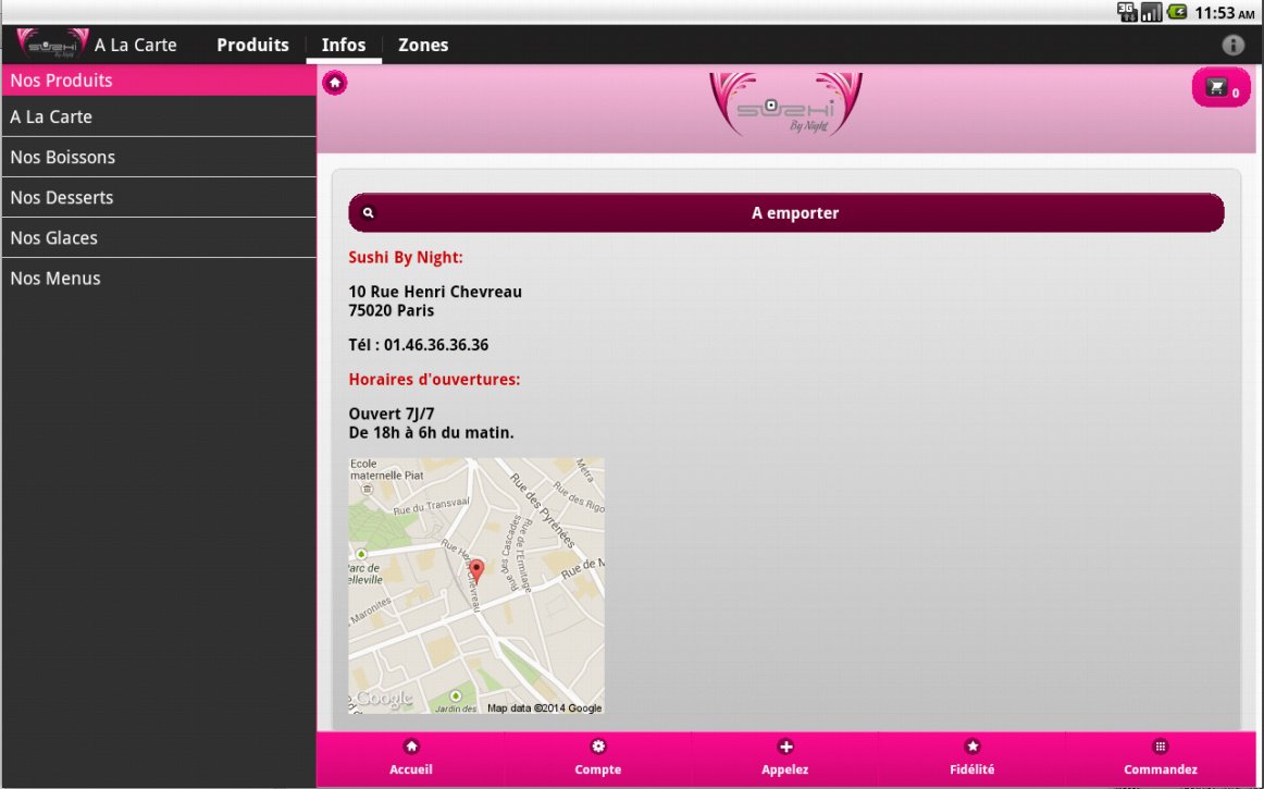 Click here to begin your online order Mailing List Be sure you are subscribed to our mailing list for current Sushi Lounge news Thank you!. Start again Previous Next Left Right More in this section Birthday Bash!. SUSHI BY NIGHT Livraison de Sushi la Nuit Paris et Banlieue Notre restaurant est ouvert 7j/7 de 22h3005h00 N° tél 01 81 03 25 Nous n'acceptons plus les chèques Fermer Livraison Emporter Choisez votre departement Choisez votre ville ou quartier L'heure.