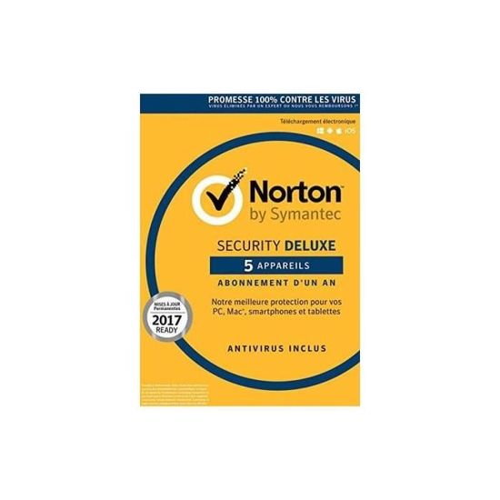 Norton Security offre une protection sans failles, sans douleur, mais c’est ce que les concurrents offrent à un prix moins couteux, surtout quand vous avez plusieurs PC En raison de ses généreux accords de licence, Norton Security offre la meilleure valeur à une famille ou un individu, avec plus de trois dispositifs qui sont protégés. Norton is one of the best known antivirus softwares available It can be used both for personal and professional use on any device connected to the internet. Norton 360 Deluxe Antivirus Software for 5 Devices with Auto Renewal 49 out of 5 stars (7) Total Ratings 7, 85% agree Easy to install $4498 New Norton 360 Deluxe 5 Devices 50gb PC Cloud Storage 46 out of 5 stars (35) Total Ratings 35, 91% agree Easy to install.