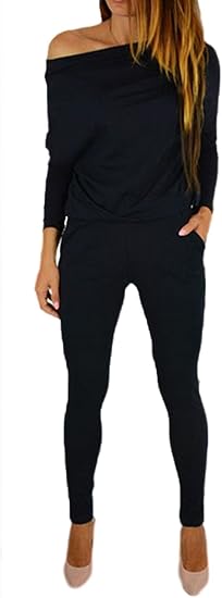 Jumojufol Les Manches Longues Un Pantalon Long Caraco Decollete L Epaule De Combinaisons Barboteuse Avec Poches Amazon Fr Vetements Et Accessoires