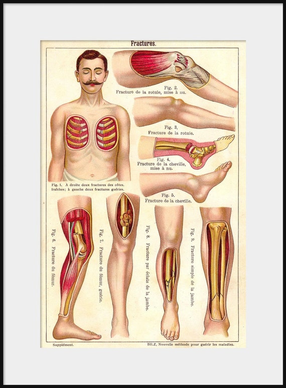 Vintage Francais Trauma Chart Rib Leg Fracture New Fine Art Etsy