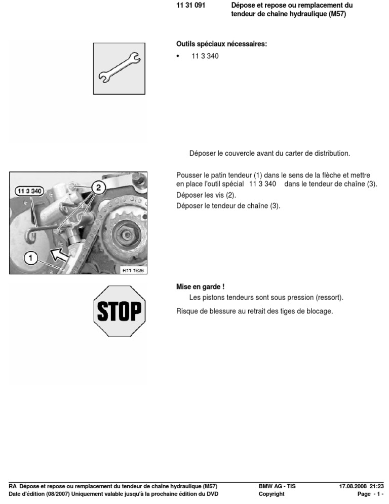Ra Depose Et Repose Ou Rem Placement Du Tendeur De Chaine Hydraulique M57