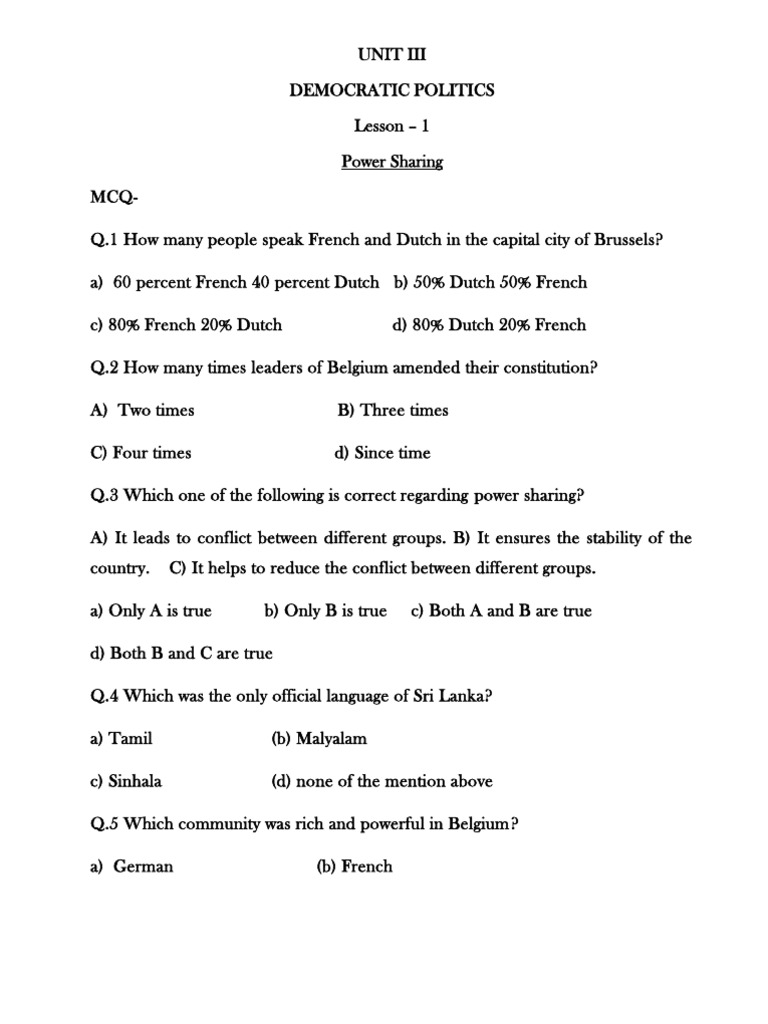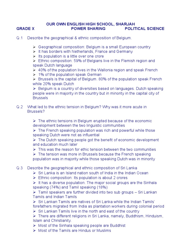 Power Sharing Q Bank With Answers Belgium Tamils