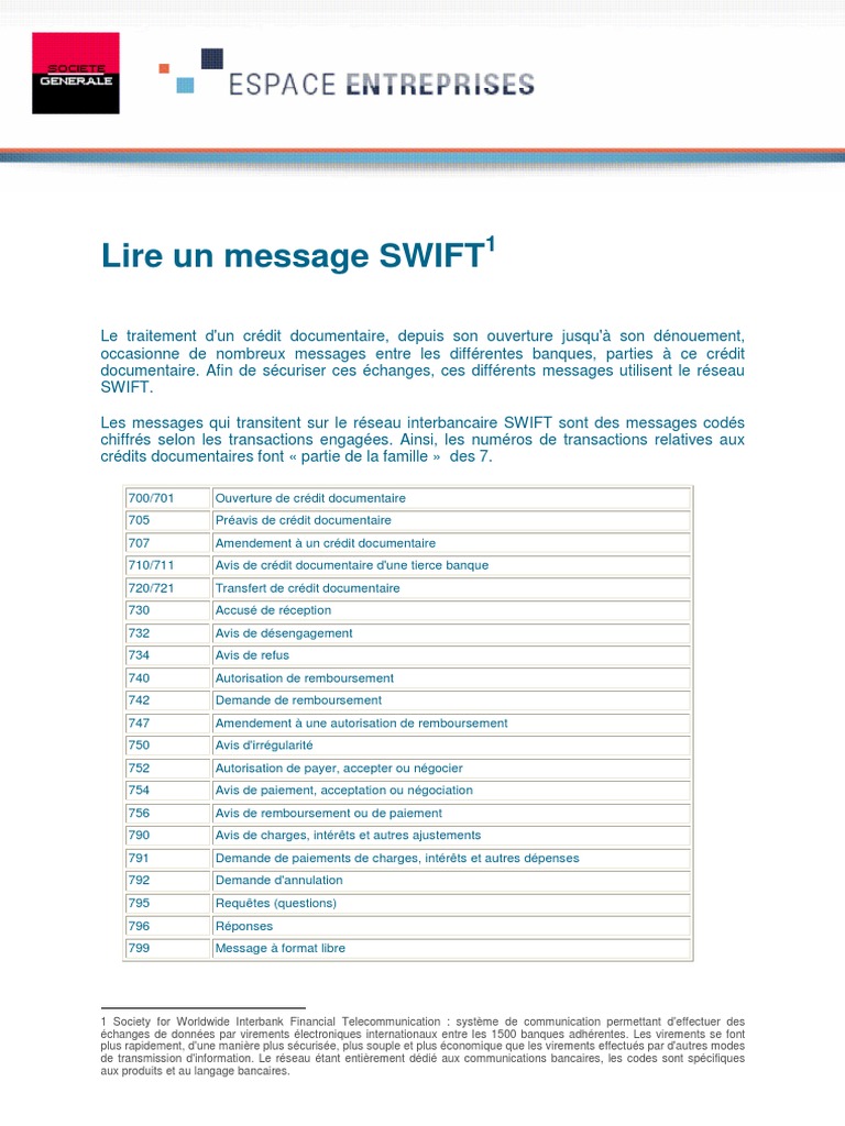 Lire Un Message Swift Lettre De Credit Banques