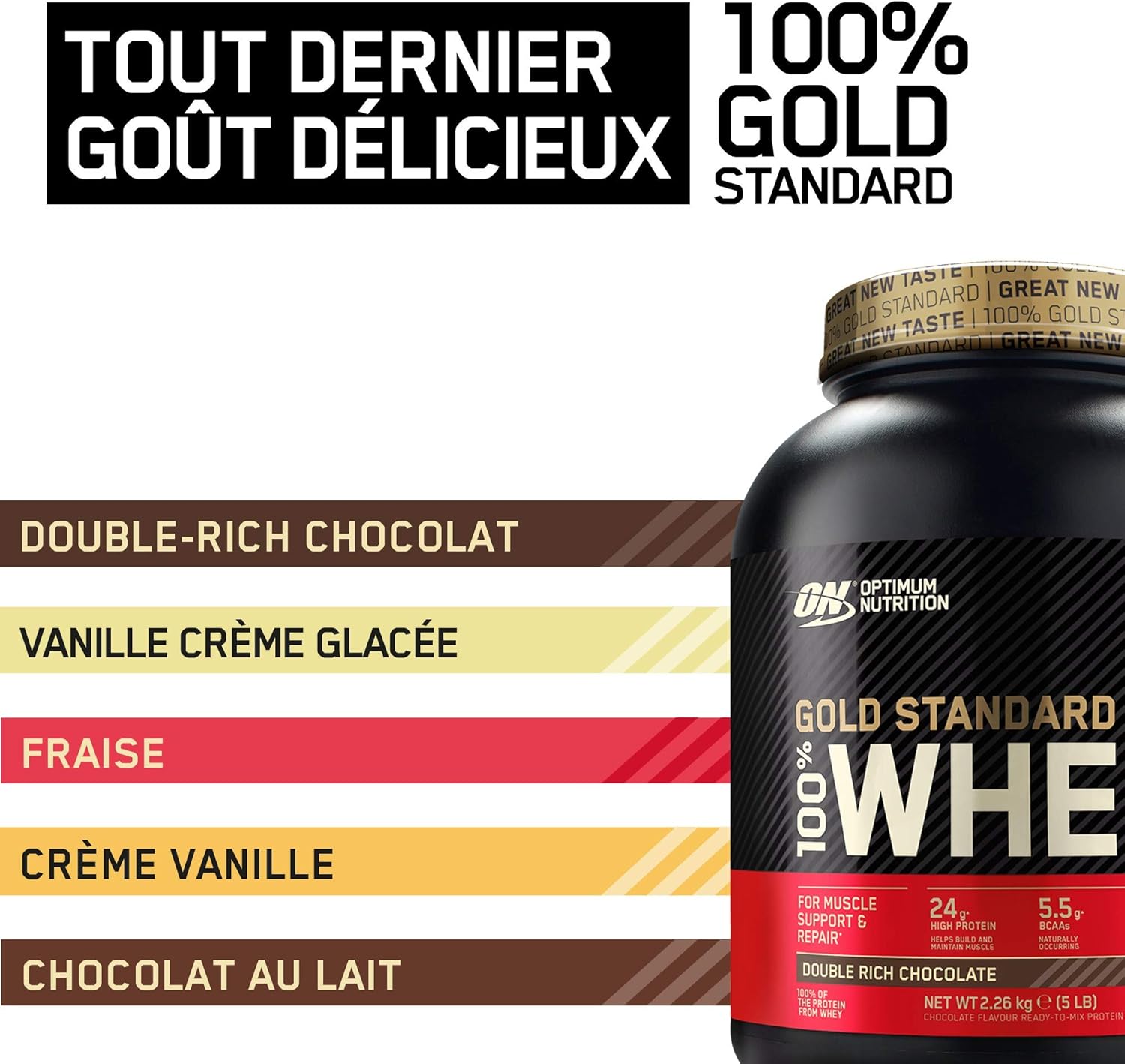 Optimum Nutrition Gold Standard 100% Whey Protein Powder, Double Rich Chocolate, 5 Pound (Packaging May Vary) 47 out of 5 stars 55,446 $5999 $ 59 99 ($075/Ounce) $45 $45. Je prends de la Whey 100% Gold Standard de chez Optimum Nutrition car je trouve qu'elle se dilue vraiment pas mal, le goût fraise est super bon, et je constate qu'elle fonctionne avec moidonc bref, habituellement je commande cette Whey sur un site en particulier (j'ai testé un autre site, même boîte de Whey, mais beaucoup plus long sur expédition). Dec 25, 18 Whey Protein from Amazon Check out the image by visiting the linkNoteIt is affiliate link to Amazon.