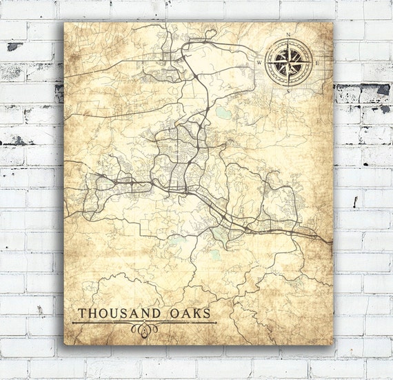Thousand Oaks Ca Canvas Print California Vintage Map Ca City Etsy