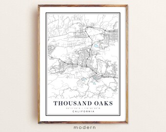 Thousand Oaks California Map Thousand Oaks City Map Print Etsy