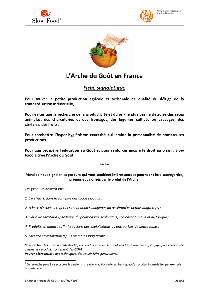 L Arche Du Gout En France Fiche Signaletique Manualzz