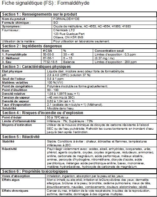Fiche signalétique de l’entreprise La fiche signalétique est la carte d’identité de l’entreprise Elle doit être rédigée sur qu’une page Vous trouverez cidessous un exemple à suivre Nota Cette fiche vous dispense d’une présentation de la structure d’accueil dans le corps du. Modèle de fiche signalétique 1 Renseignements sur le produit Nom du produit Solvant X Fournisseur Distributions XYZ enr123, rue XYZQuébec (Québec). FICHE SIGNALÉTIQUE 1 Identification Identificateur de produit PRODUITS DU BOIS (LIAISONNÉS AVEC DE L’URÉEFORMALDHÉYIDE) Liste de produits Medium Desity Fiberboard (MDF) Paneling Mount Vernon®, StyleLine™, UltraStock MDF produced with UF resin ShelvingEngineered Boards Jubilee® RTP Beadboard Paneling, Clutter Cutter® Panels, InfiniCor®.