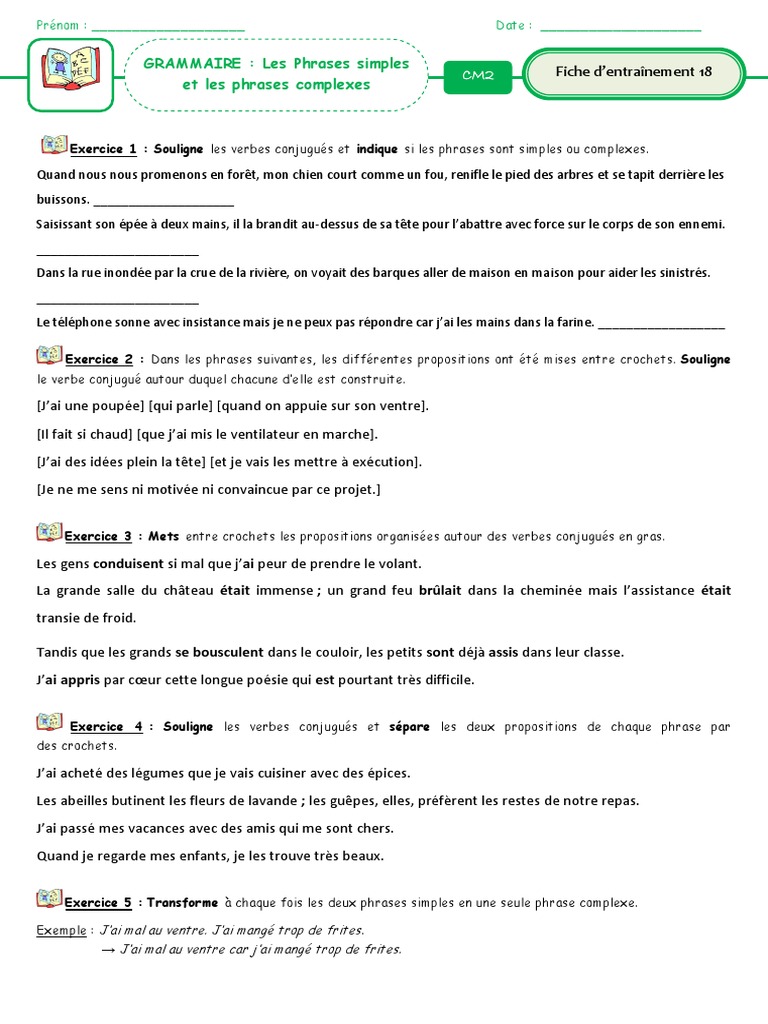 Cm2 Exercices Phrase Simple Phrase Complexe