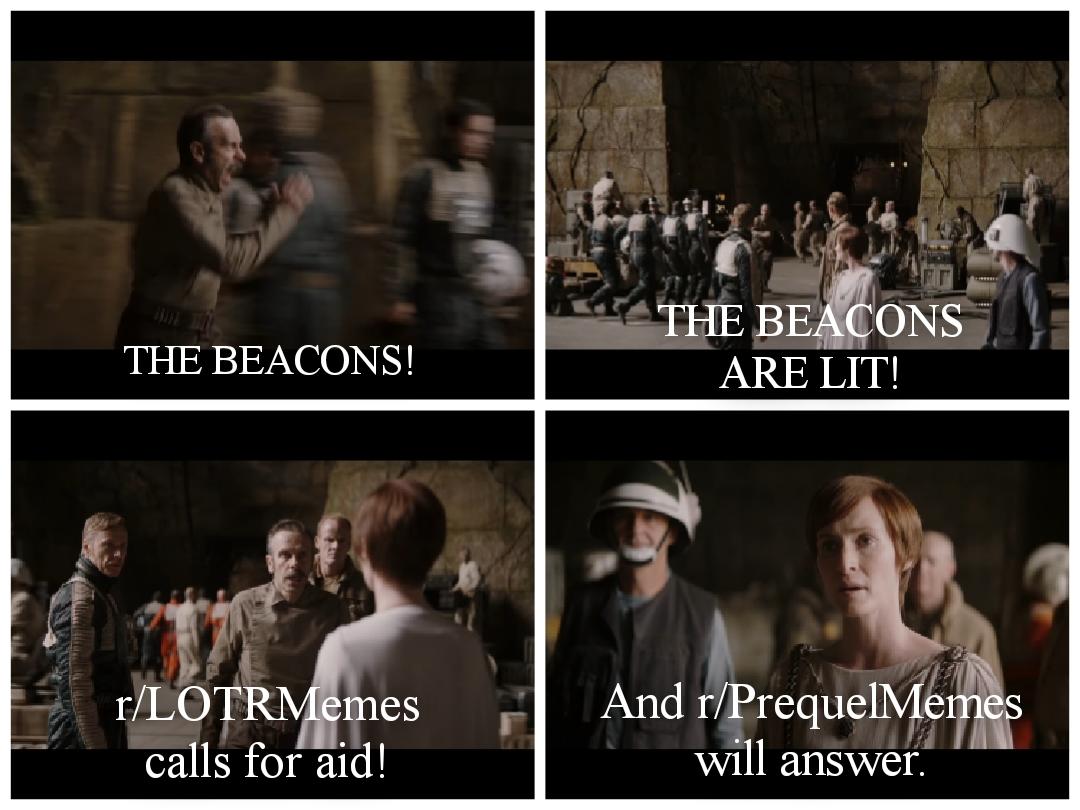 The Beacons Are Lit Rprequelmemes Calls For Aid And Rlotrmemes Will Answer Muster The Rohirrim We Ride To War With Our Allies Rprequelmemes Lit Meme On Me Me
