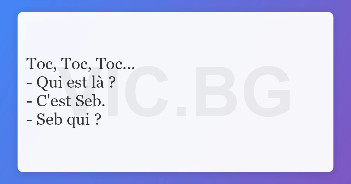 Toc Toc Toc Qui est là?. ) je vous souhaite de bien vous marrer sur ce blog N'hésiter pas aussi à kiffer chaque blagues et à laisser vos impressions, partagez ou même devenir fan. => Seb pas l’homme qui prend la mer, c’est la mer qui prend l’homme Renaud – Dès que le vent soufflera => Seb bon pour le moral ;.